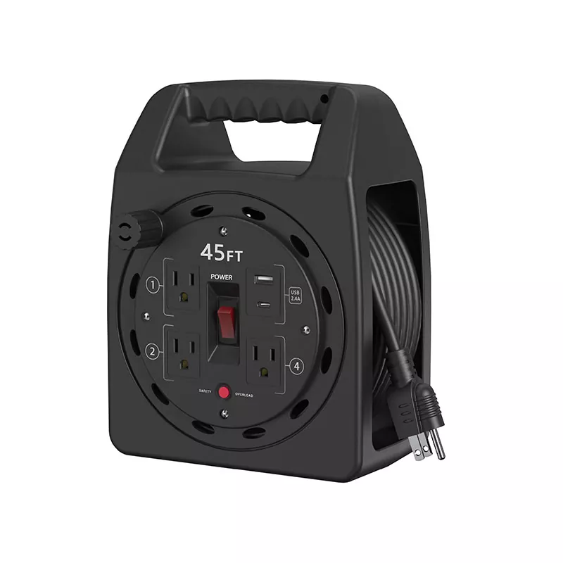 Ningbo Kaifeng 3 Outlets Reel di plastica USB2.4A 45ft con parametro di protezione da sovraccarico (Specifica)